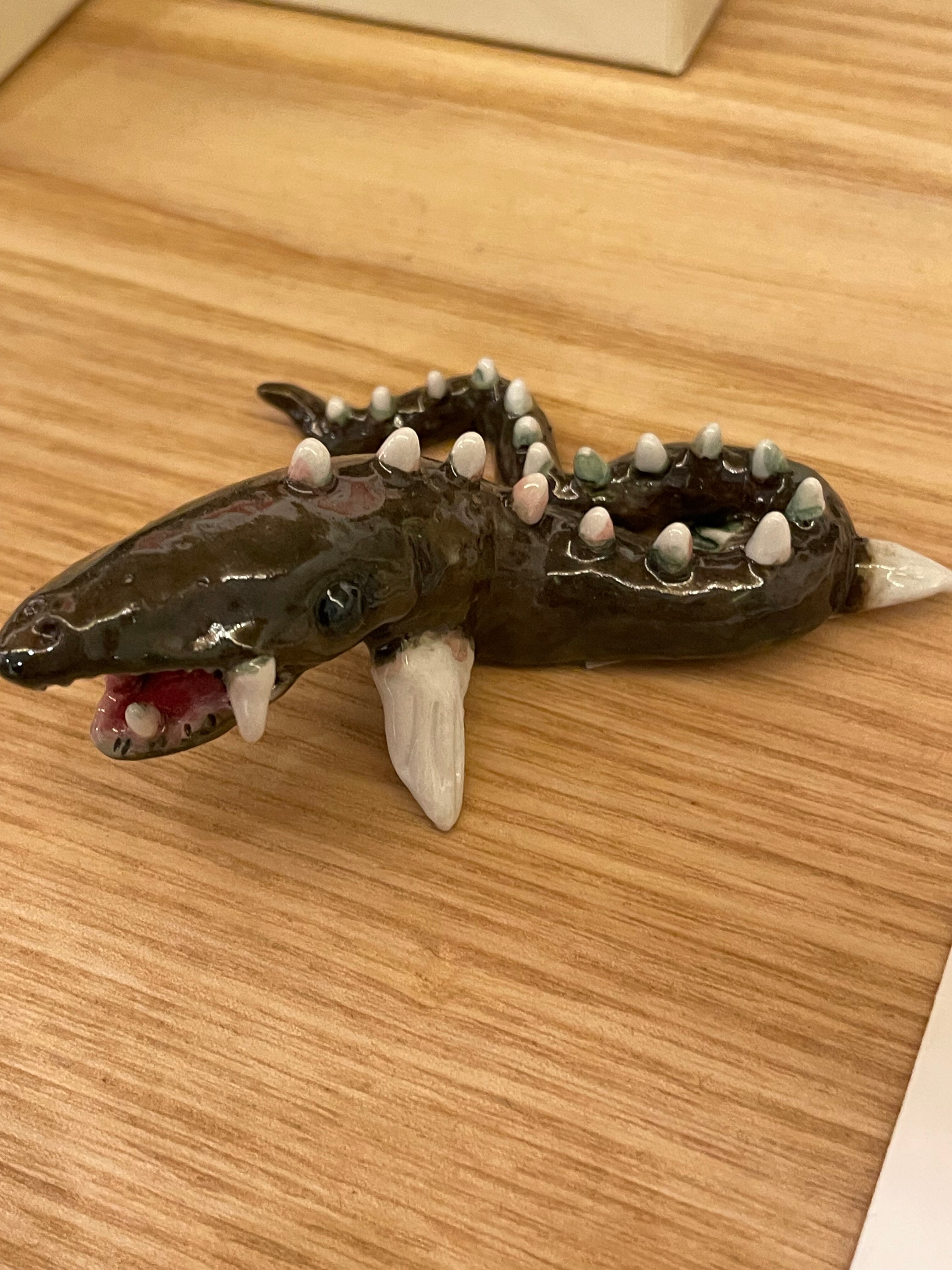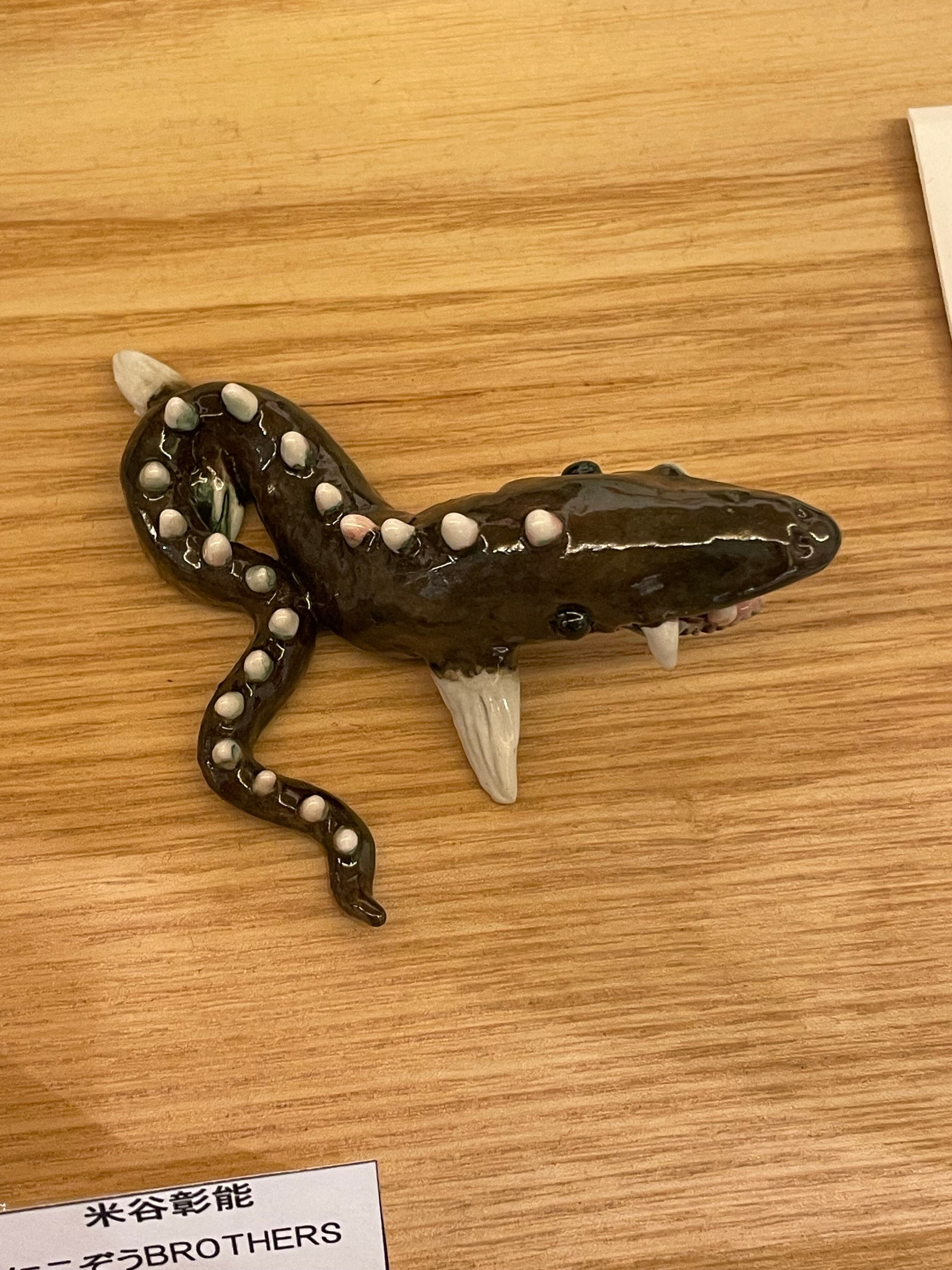 九谷焼の技法を用いて製作された、空想上の生き物のフィギュアです。