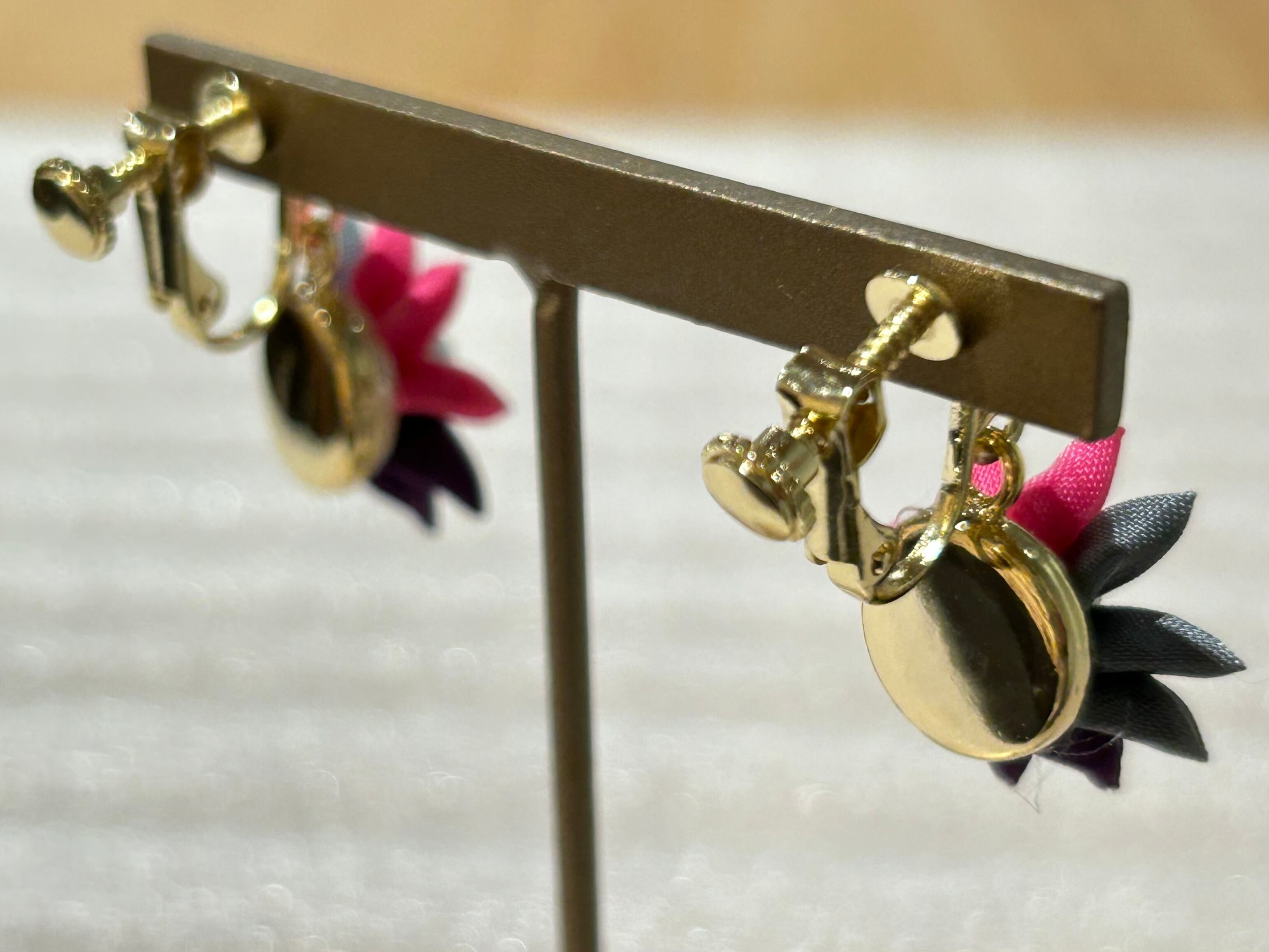 ヒトツマミづつ丁寧に丁寧に何層にも重ねて作られたツマミ細工の小ぶりのイヤリングです。