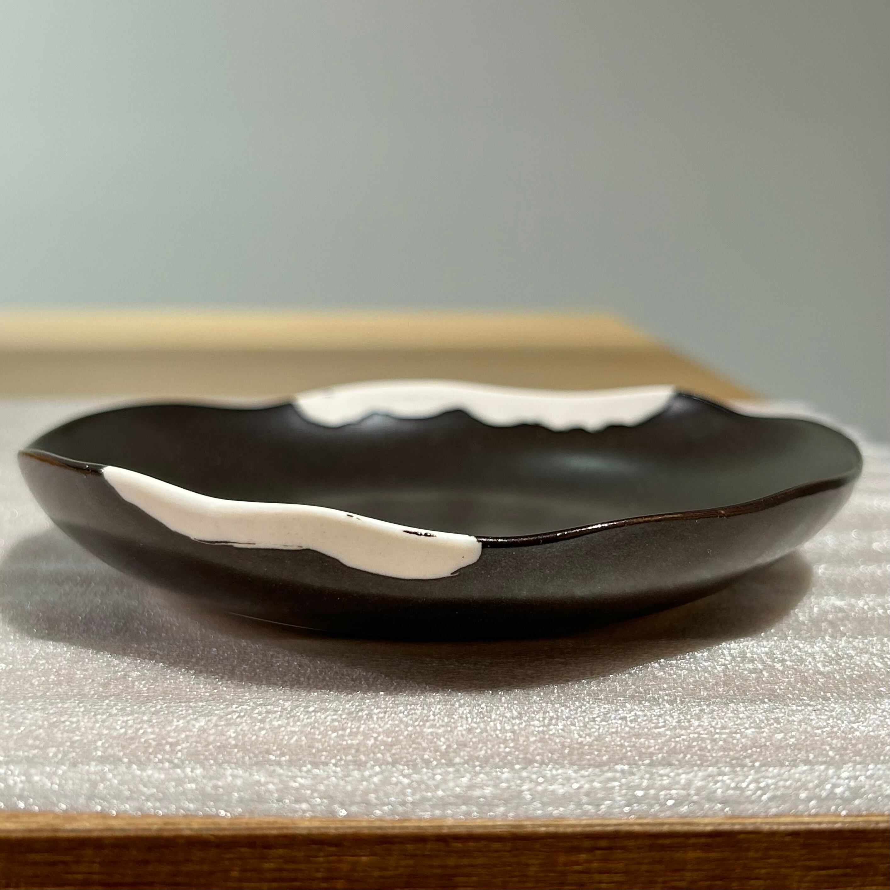 黒と白のコントラストと、柔らかで自由な線が楽しい器たち
