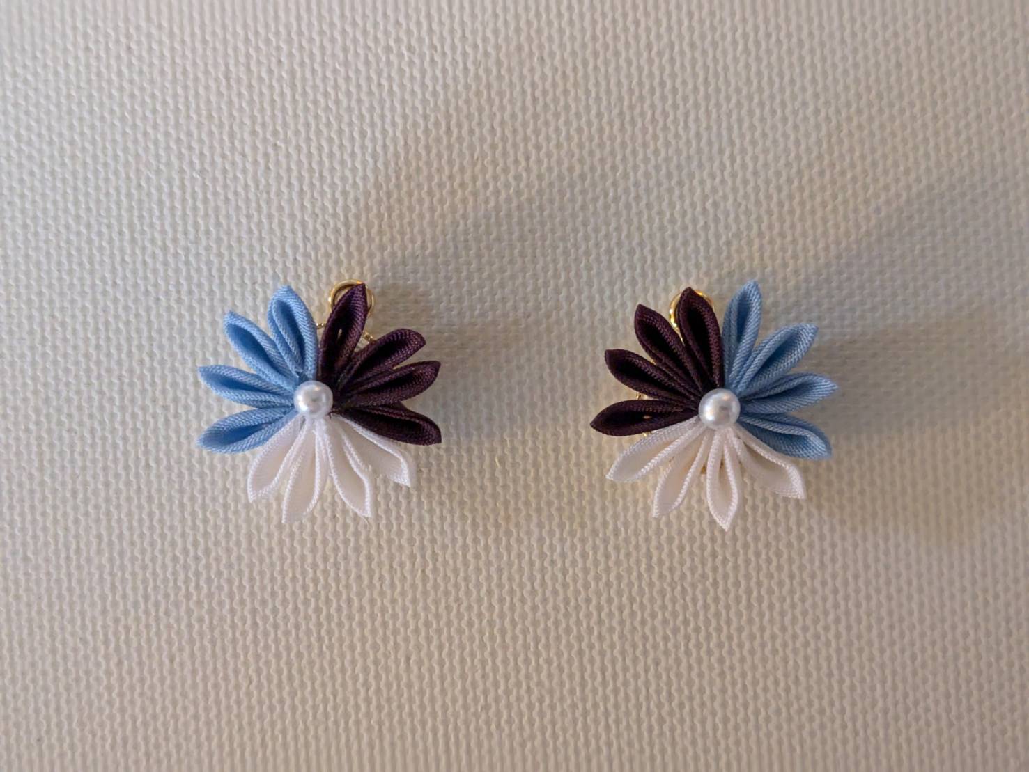 ヒトツマミづつ丁寧に丁寧に何層にも重ねて作られたツマミ細工の小ぶりのピアスです。